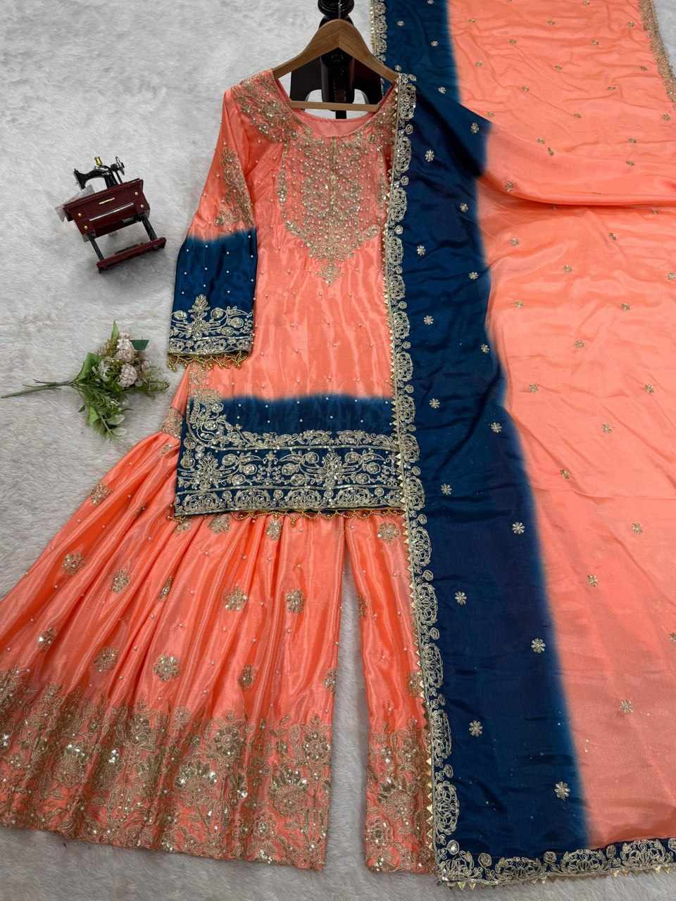 | Name : | KD 1498 Havy Chinon Orange Designer Suit |