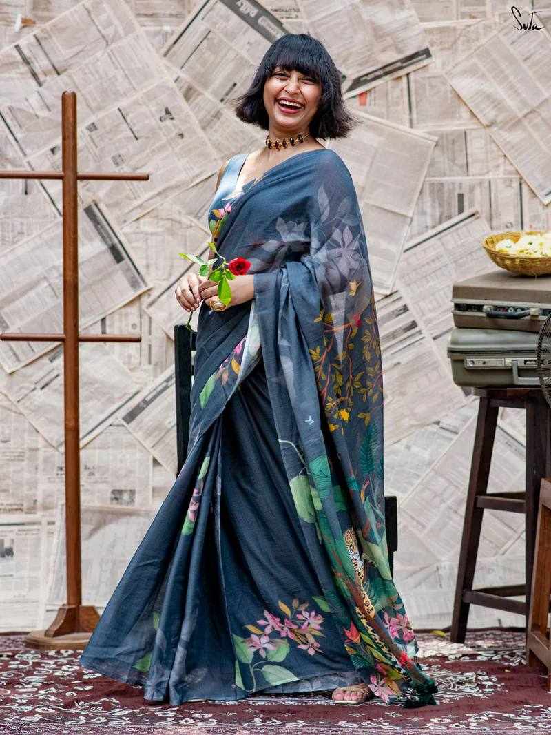 Fabric: Linen Cotton with beautiful digital print and handmade cotton tassels (5.5 m cut)