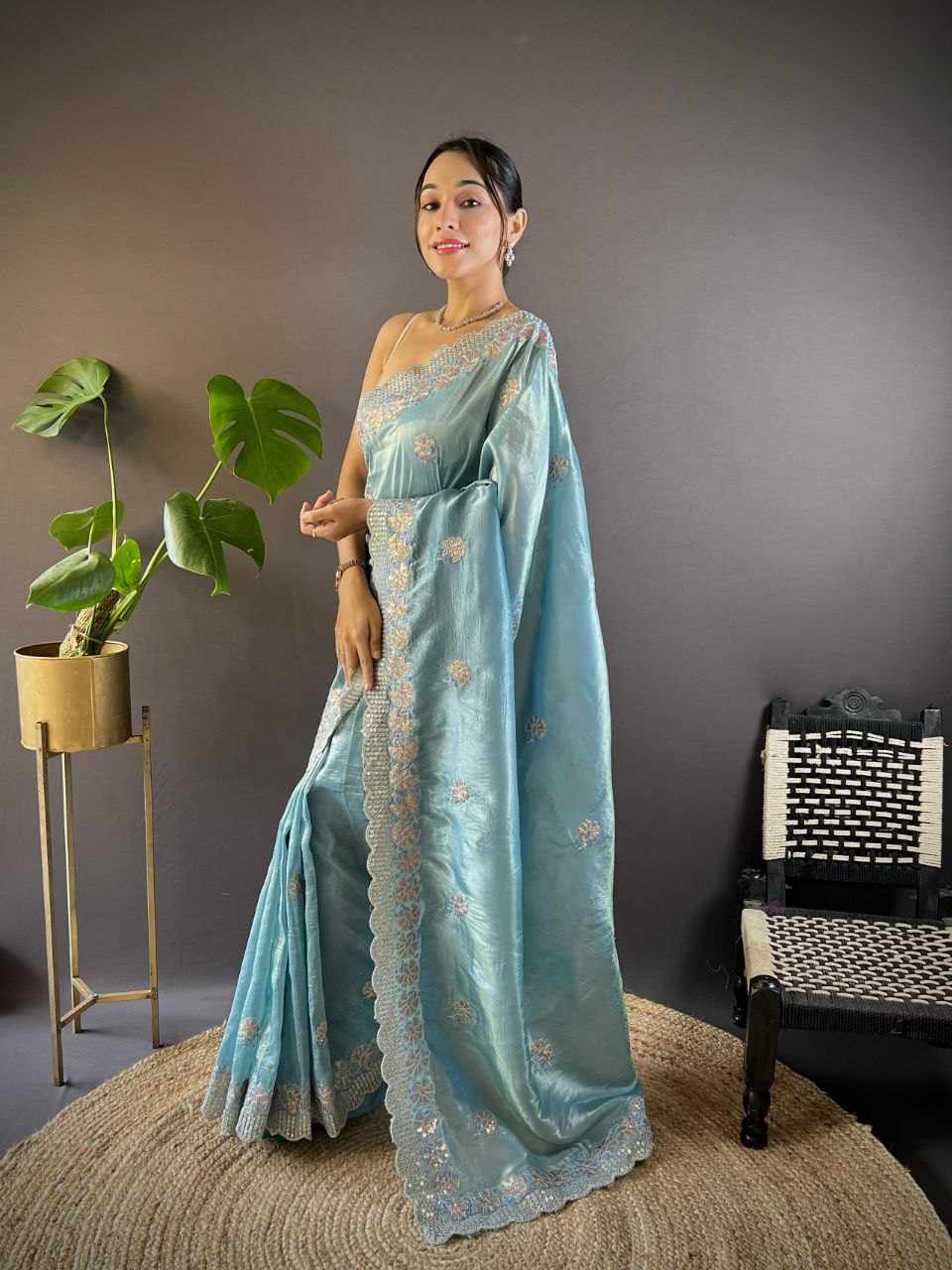 | Name : | RC 5084 Blue Gold Crunchy Designer Saree |