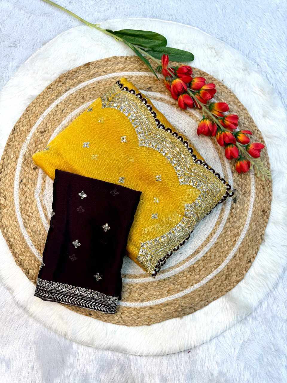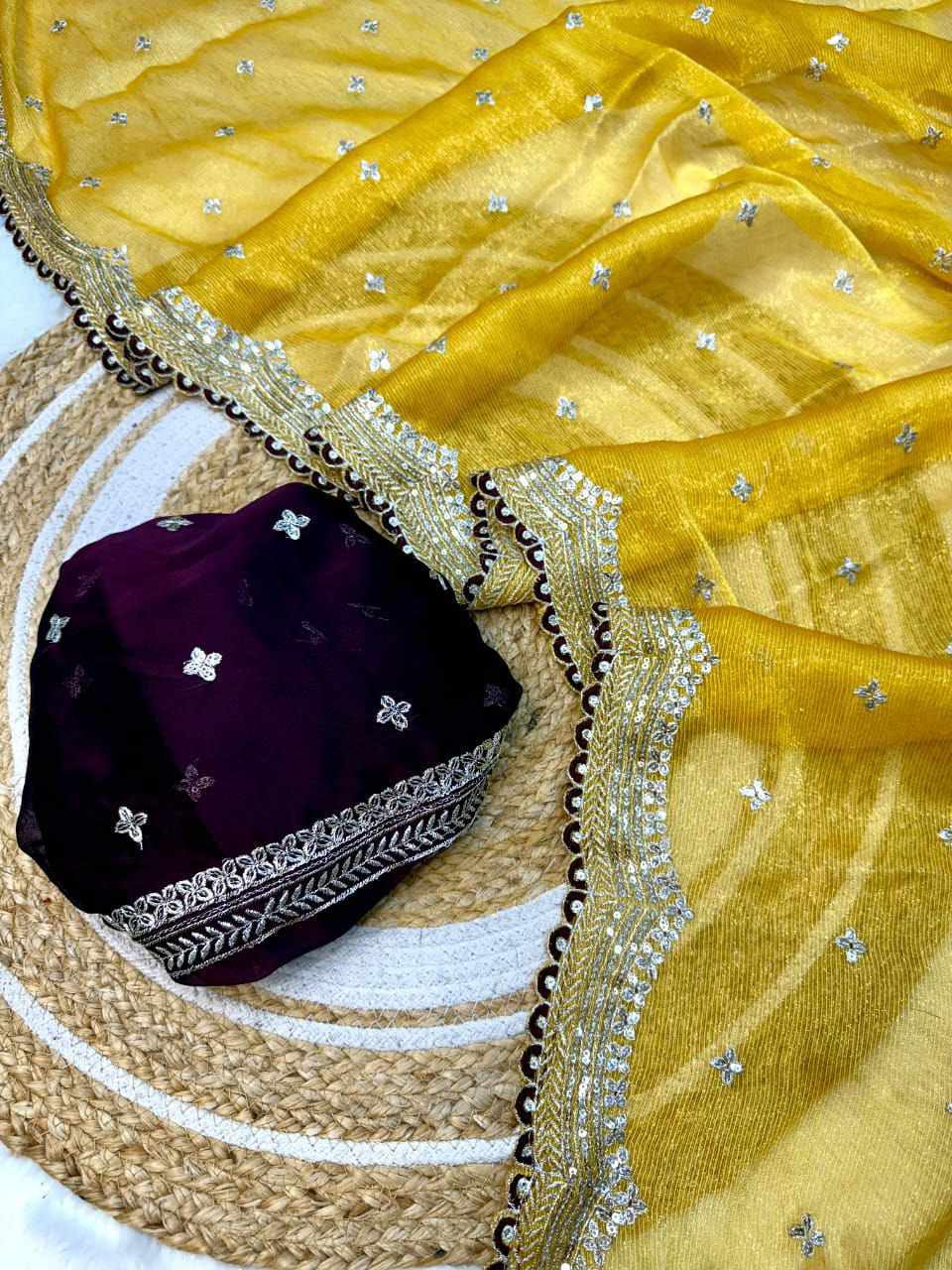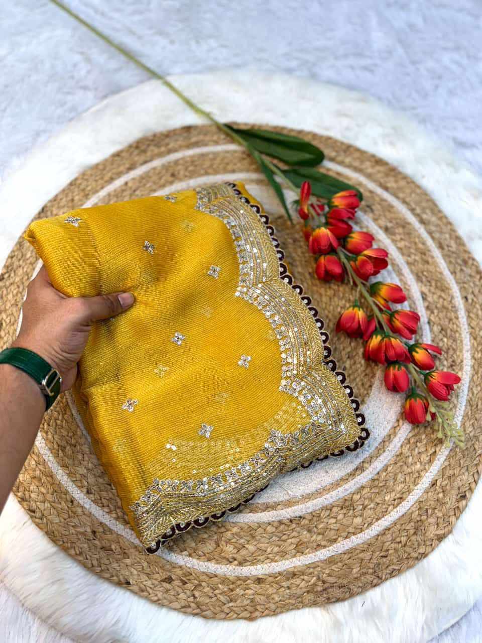 | Name : | RC Mustard Sitara Thread Embroidery Beautiful Saree |