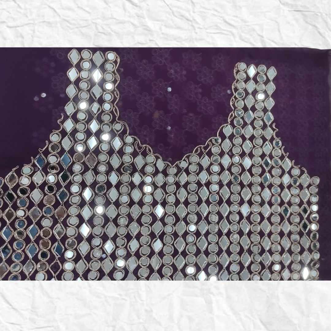 Heavy Georgette Blouse With Heavy Embroidery Front & Back With sleeves With Heavy Original Mirror