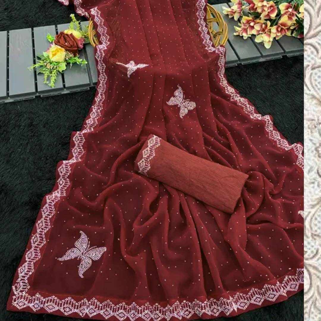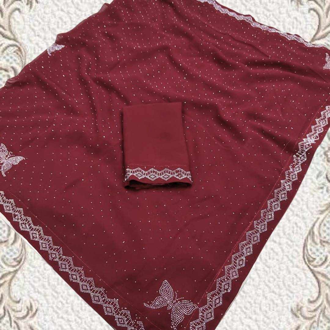 S4s Maroon Siroski Butterfly Stones Lace Georgette Party Wear Saree